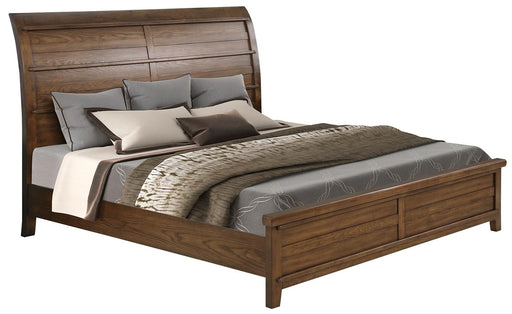 410 Gilliam bedroom group in a warm rustic brown finish. Fully assembled case pieces with matte black hardware.
