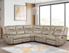 The Shelton 3-Piece Manual Reclining Sectional blends plush comfort with smart functionality. Upholstered in soft camel polyester, it features two outer reclining seats that extend to a 135-degree angle with just 3 inches of wall clearance. The Right-Arm-Facing Loveseat includes a lift-top console with a wireless charging surface, hidden storage, and two stainless steel pop-out cupholders. Generously padded arms and headrests ensure lasting comfort, while mottled fabric and arched stitching add a tailored, stylish touch to this versatile sectional.