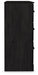 With its clean-lined look and modern attitude, this dresser and mirror is a fresh style awakening. A warm charcoal hue over replicated oak grain easily complements other furniture finishes. Smooth drawer fronts with antiqued pewter-tone handles complete the aesthetic.