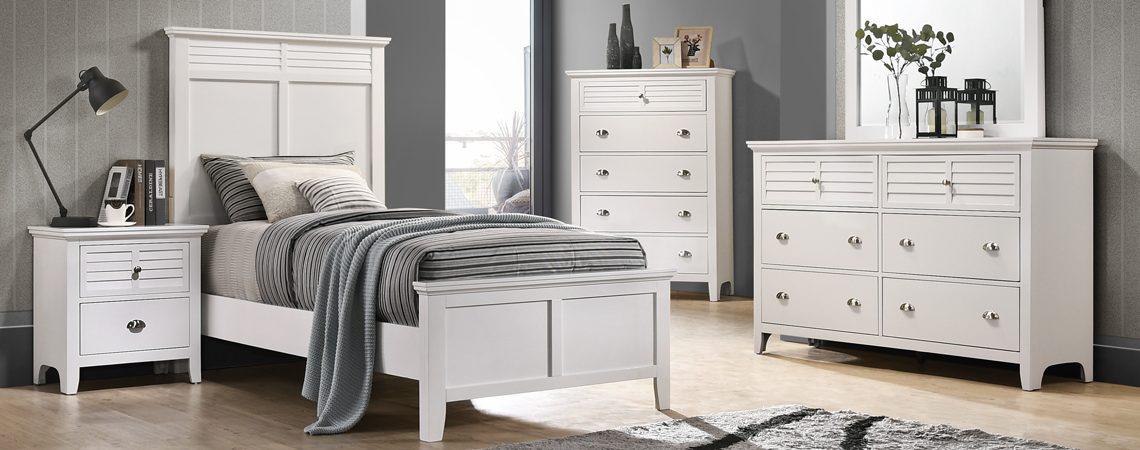 Cottage Bay White Queen Bed, Dresser, Mirror